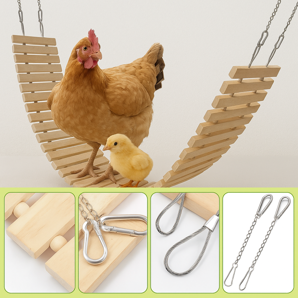 Graças aos seus ganchos resistentes e às suas correntes ajustáveis, instala-se em poucos segundos em qualquer galinheiro, árvore ou cerca.