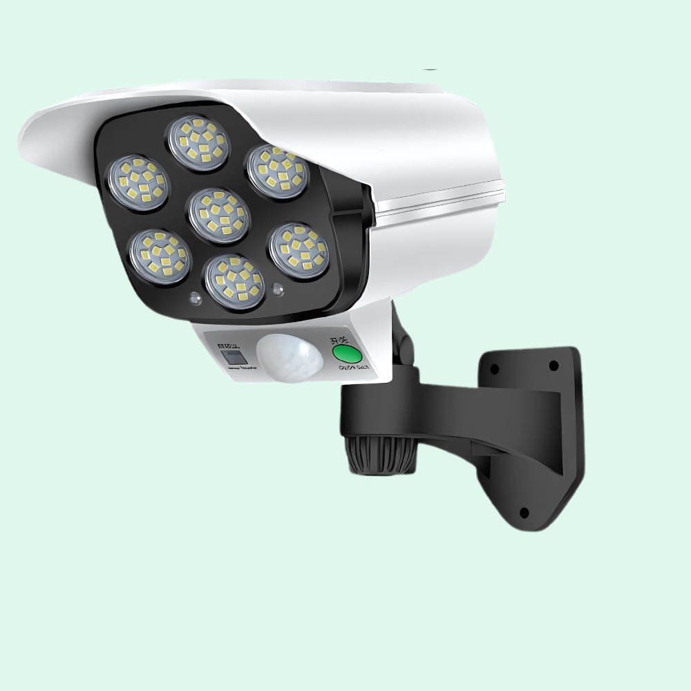 Nosso refletor solar apresenta um design único que evoca a aparência de uma câmera de vigilância remotamente, em particular graças ao seu luz vermelha Quem pisca.